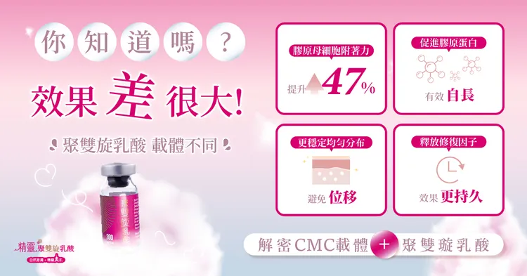 同時,AestheFill 更搭配CMC(羧甲基纖維素)作為載體,先提供立即的支撐效果,再交由 PDLLA 持續養膚。「即刻修飾 × 長效增生」的雙效黃金組合,正是它與其他填補劑最大的不同。