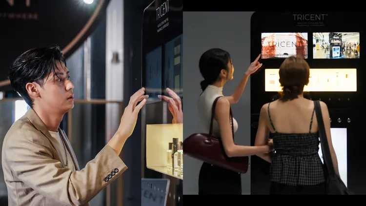 TRICENT香氛互動體驗機打破傳統百貨專櫃的空間限制,傳遞「城市香氛圖書館」的理念,其操作過程極其簡單,使用者僅需透過直覺式觸控螢幕瀏覽資訊,選定心儀款式後,機器便會精準地將香氣噴灑於手腕,確保試香過程潔淨且不混味。若遇見命定香氛,只要掃描螢幕上的QR Code,即可瞬間串連線上平台進行深度了解或下單購買。