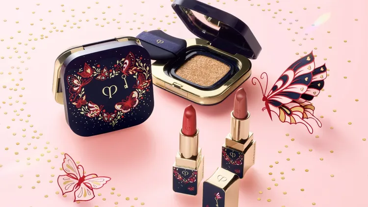 唇妝則挑選兩款人氣色號換上限定新裝,經典系列的#5 玫紅色溫柔又有存在感,,塗抹雙唇時彷彿蝴蝶綻放耀眼光采;霧絨質地的#111則是浪漫裸粉,絲絨霧感讓唇語更顯深情,為約會添上決勝的一抹溫柔 。