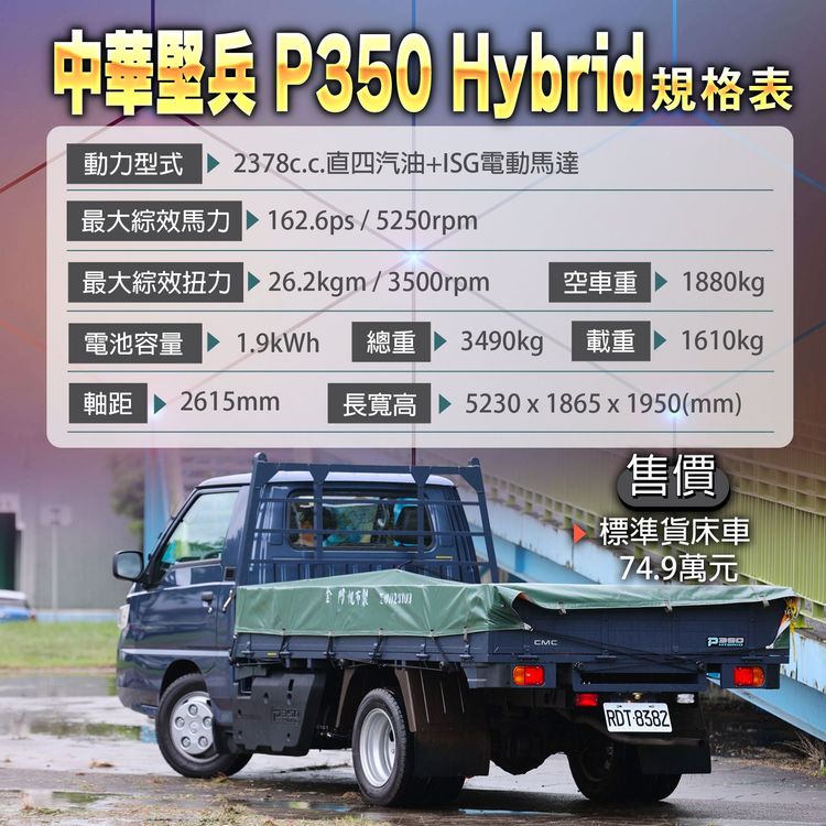 第一眼看到中華堅兵P350 Hybrid,相信不少人直接會聯想到在市場上能見度相當高的Delica得利卡;確實,堅兵P350 Hybrid是以得利卡為基礎衍生而出,但堅兵不但有比得利卡大一號、達到5230mm的車長,貨台長度寬度更同時增長來到3079mm及1747mm的規模,更能載的貨床空間,並擁有1610公斤的載重能力,相較於得利卡最大載重僅近1200公斤確實更為突出,而其最大總重也得以來到3490公斤,正式揮軍3.5噸級距。