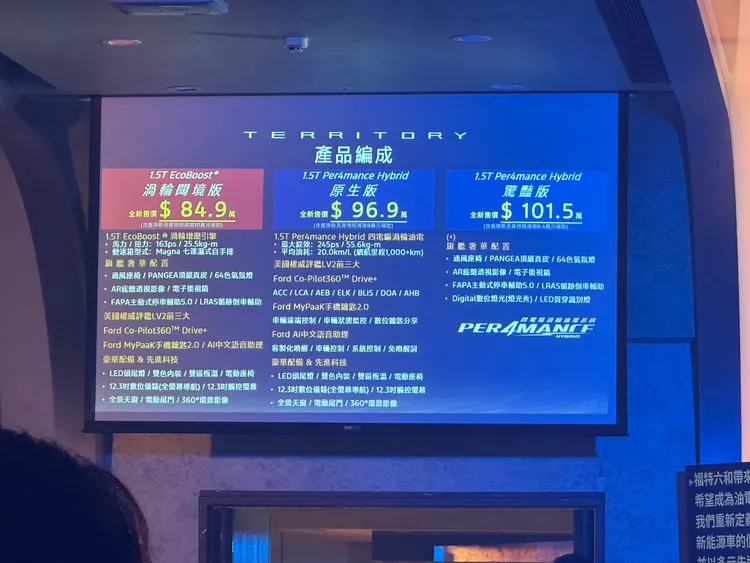 隨著 Territory 正式加入中型 SUV 戰局,福特六和提前補齊油電產品布局,新車搭配具競爭力的價格帶與完整科技配備,有望成為品牌在國產休旅市場的重要戰術車型。後續市場回饋與油電動力佔比,將成為影響銷售走勢的主要觀察指標。
