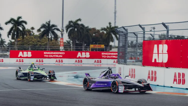 邁阿密站賽前突如其來的一場小雨,讓賽道條件變得溼滑,賽事也在 Porsche Taycan Turbo GT 安全車帶領下起跑。駕駛 Porsche 99X Electric 的 Nico Müller,稍早於排位賽拿下個人生涯首座 Formula E 竿位,並在第六圈靜止起跑後成功取得領先。這位瑞士籍車手在邁阿密國際賽道多數時間穩居領先集團,最終以第二名完賽,不僅是他本季首次站上頒獎台,也寫下加盟保時捷 Formula E 車隊後的最佳成績。