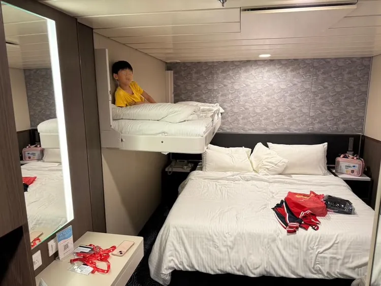 許多搭乘郵輪的人對房間要求不多,能睡覺就行,畢竟大部分時間都不在艙房呀!但對於重眠或有潔癖的人來說,小地方的不舒適可能會大大影響整段航程的心情。網路上最多人詢問的就是「衣服洗了會乾?」就有旅客分享「房間冷氣夠強,可用浴巾擰乾再掛起來,第二天絕對會乾!」第二多被詢問則是「床鋪好睡嗎?」根據旅客經驗談,下舖單人床支撐力很足夠,不會睡到腰酸背痛,而上鋪則偏軟,腰椎不好的朋友較建議睡下舖!另外28吋行李箱可放床下,更大尺寸或胖胖箱則需要放衣櫃。小編私心建議帶大一點的行李箱或多帶幾個購物袋,因為行李無限重,當然要買好買爆的啊!