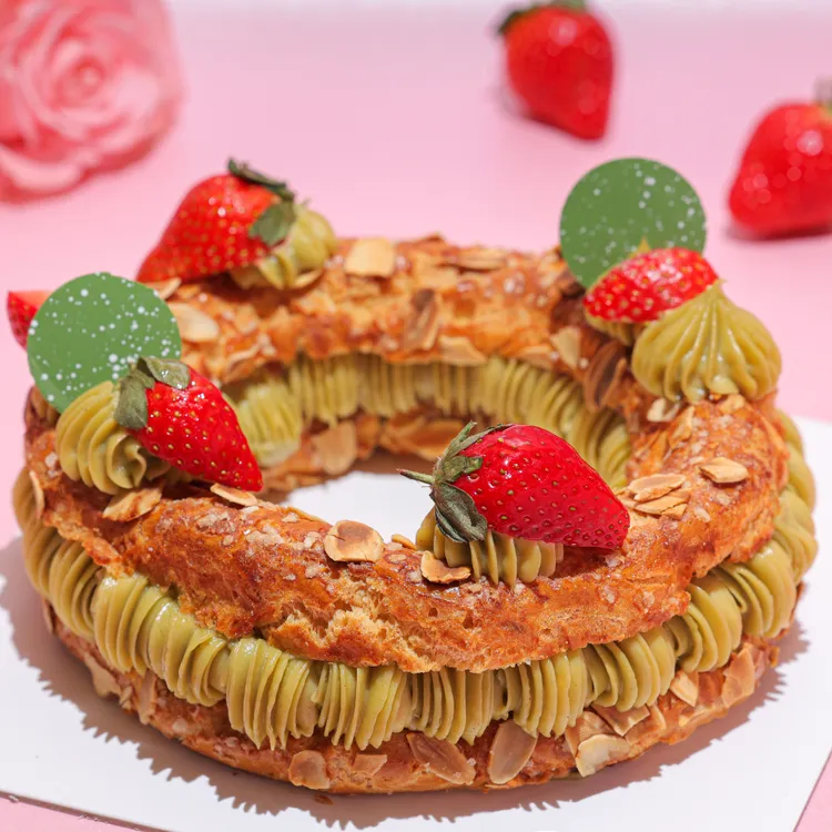 台北晶華酒店甜點行政主廚羅倫(Delcourt Laurent)操刀設計多款草莓甜點,其中「草莓布雷斯特泡芙 Strawberry Paris Brest」是以新鮮草莓搭配蜜漬草莓與開心果慕斯琳奶油,帶出多層風味與香氣。「草莓聖安娜泡芙 Strawberry St. Honoré」是以焦糖酥皮與焦糖泡芙堆疊香草香緹、草莓醬與鮮草莓,展現正宗法式經典。