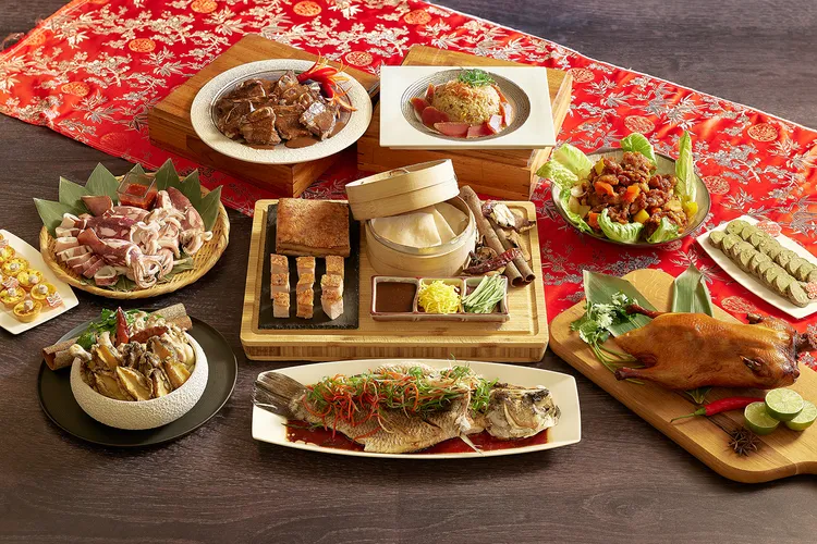 餐檯上最吸睛的莫過於一字排開的燒臘與熱食。外皮金黃酥脆「廣式烤鴨」,油脂分布勻稱、皮脆肉嫩;經長時間處理的「秘製脆皮五花肉」,外層酥化、內裡柔潤,鹹香層次分明。熱炒區則端出經典「左宗棠雞」,酸甜微辣的醬汁緊裹外酥內嫩的雞肉,是最受歡迎的菜色之一。本季菜色還有「爐烤香料牛排」、「普羅旺斯香草烤羊排」、「法式燉牛舌」等經典美味。