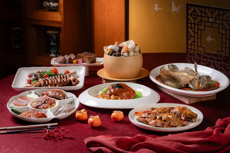此外,為滿足不同家庭需求,讓新年宴客聚餐的餐桌更加豐富與美味,桃花林亦同步推出多款年菜外帶單品,如鮑汁煮圍村盆菜、天馬賜福乳豬燒味拼盤、鮑參翅肚佛跳牆、鮑汁極品鮑魚扣圓蹄、紹興炊火無骨牛小排、干燒酒釀龍虎斑、杏片避風塘燒雞、港式蘿蔔糕、桃花林御製八寶飯、港式火瞳雞湯,以及貼心規劃的素蘿蔔糕與素食雙糕組合(素蘿蔔糕+紅豆年糕),讓素食賓客同樣能歡喜過年。