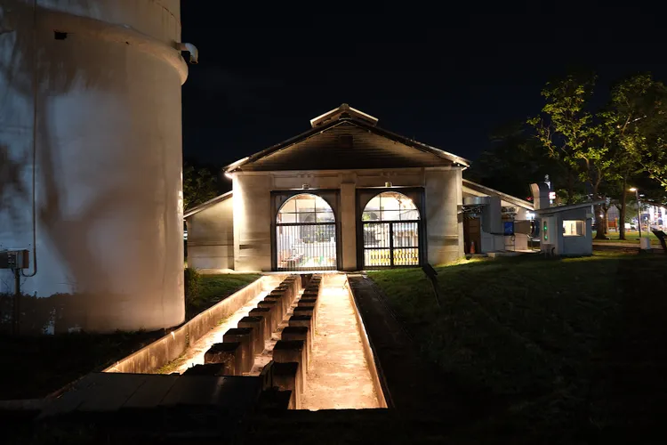台東機關車庫建於1917年至1919年間,是東部鐵道三大機關車庫中唯一保存至今的日式半木造越屋頂建築,過去作為臺東舊站火車頭維修重地,2001年臺東舊站廢站後被登錄為歷史建築,車庫具備挑高一樓空間、RC結構與無門山牆設計,車庫內挖深,再以水泥柱支撐鐵軌,以利工作人員檢修。鐵軌雖已拆除,修車溝、水泥柱與工作臺仍完整保留,空間經過重新活化,成為獨特、富故事感的餐飲空間。