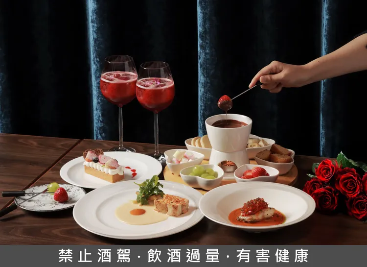 主菜部分選擇更是展現對風土與食材的細膩洞察,細緻的「高雄永安石斑魚」搭配鮮濃龍蝦醬汁,捕捉海洋的氣息;「雲林桂丁雞」佐惡魔烤雞醬汁,炭火穿透的紮實肉質令人滿足;喜愛經典牛排的賓客也能享受「爐烤4oz美國牛沙朗」,主廚精準掌控火候,封存每一滴肉汁。在柔和燈影與悅耳樂音的陪襯下,每一道菜都是戀人之間的低語告白,套餐售價2380元+10%/人。