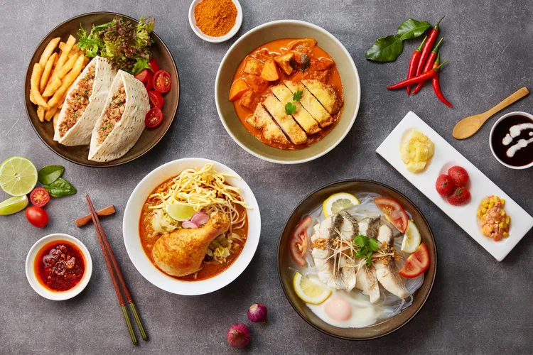 「大馬咖哩炸豬排飯」則是阿伸師傅私心最愛,日式炸豬排混搭香料馥郁的南洋咖哩醬,加倍惹味!洋蔥、大蒜、干蔥、香茅打成香料泥,混炒大馬咖哩粉,再與咖哩葉、椰漿、棕櫚糖熬煮成咖哩醬。香濃醬料包覆金黃酥脆的炸豬里肌肉排,一口咬下咔滋多汁,微辣噴香。思鄉代表作「娘惹豆醬雞肉飯」,更是阿伸從小吃到大的家常美味。以當地用來蒸魚、滷肉的發酵黃豆醬,加上炒香的干蔥泥及醬油、油蔥酥、椰糖煮成醬汁,再與去骨雞腿肉、馬鈴薯塊、香菇燴煮入味,醬香厚實、鹹甜交織,配上白飯最對胃。