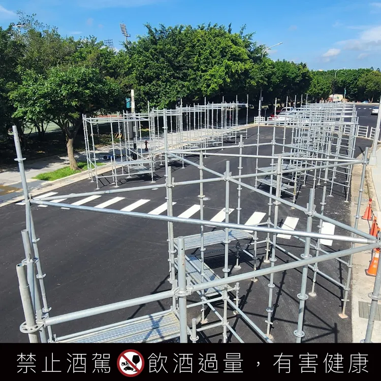 除了手上的杯子,整個展場空間也是一場「循環設計」的策展。針對大型活動常見的裝潢廢棄物,主辦單位與碳管理顧問〈零碳科技〉、〈逕生建築〉合作,利用工藝級高強度鷹架作為主體結構,確保活動結束後能 100% 回收重組。