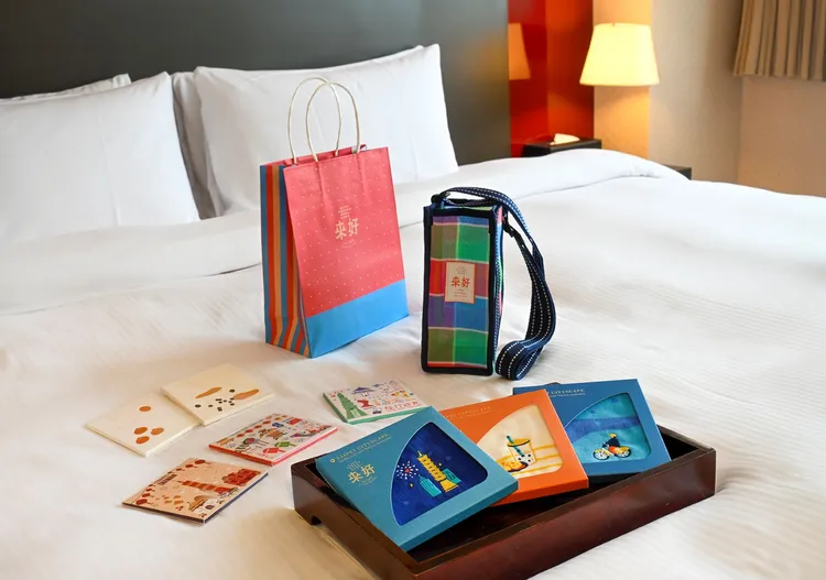 以「走動式管理」風格著稱的總經理楊慧娟,平日經常穿梭於飯店各樓層觀察服務細節並傾聽旅客需求。她表示,台北凱撒正對台北車站並與捷運M6出口無縫連通,多數旅客入住時最重視交通便利與機能實用,因此本次壽星禮物特別以「好看、好用、帶得走」為挑選原則。生日禮品以濃厚台灣風格為主軸,包括經典茄芷阿嬤水壺杯袋、繡有台北101與U-Bike圖騰的純棉刺繡手帕,以及結合台灣美食與景點意象設計的烏龍茶香吸油面紙,將台北日常轉化為富有設計感的生日紀念。