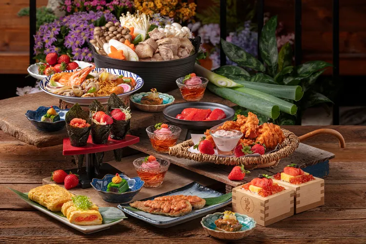 其他鹹味佳餚包括「明太子玉子燒」、炙烤「烤山藥明太子」以及「辛口雞柳明太子」,每道料理透過精準火侯與食材搭配,呈現博多屋台風味的熱力與層次感;手捲區更推出鹹鮮明太子手卷與甜美草莓手卷,展現一鹹一甜、辛萌對比的九州春日味覺張力。