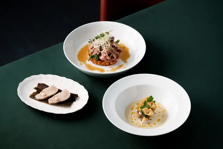 整體設計回歸義式料理的核心精神—強調食材本質、烹調技法與時間堆疊,但在此基礎上融入「宜式」語境,也就是以宜蘭在地物產為主體,透過義式手法轉譯,使熟悉風味產生結構性變化。例如冷前菜以義式Acqua Pazza為技法基底,卻引入類似「血腥瑪麗」的酸辣調性,形成具有辨識度的風味輪廓;湯品則將義式Ribollita的濃厚蔬菜結構,嫁接東南亞肉骨茶的香料邏輯,完成一種跨地域的風味融合。