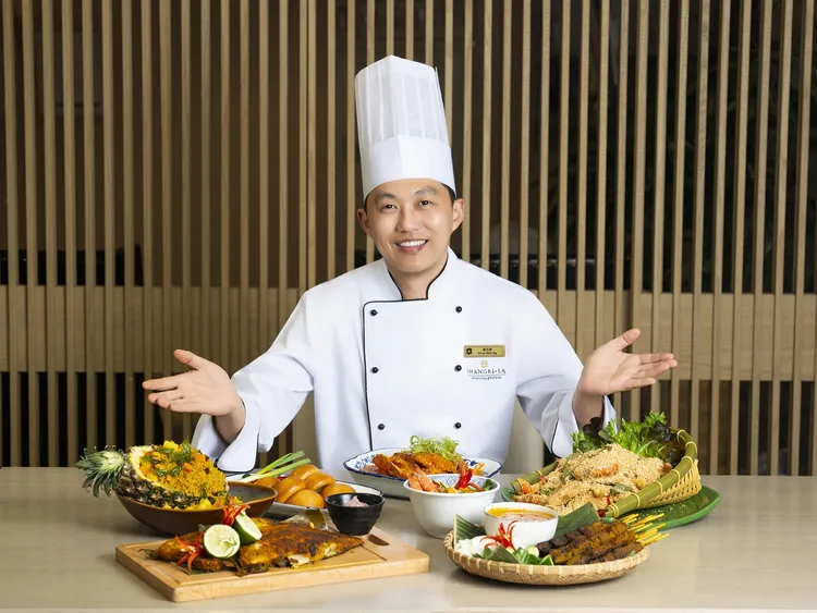 羊肉沙嗲佐自製花生醬,以精準火候鎖住肉汁,搭配濃郁堅果醬香,呈現經典街頭風味;新加坡辣椒蟹以酸辣醬汁包裹肥美蟹肉,層次濃厚飽滿;海鮮叻沙麵以蝦頭與香料熬製湯底,融合椰奶展現濃郁辛香;麥片炒虎蝦結合酥脆口感與奶油香氣,風味豐富;香蕉葉烤魚透過包覆慢烤鎖住水分,展現自然草本香氣;鳳梨炒飯則以果香平衡鹹味,清爽不膩。甜點「香蘭椰絲卷」以香蘭葉與椰糖交織,呈現經典娘惹甜點的細膩層次。