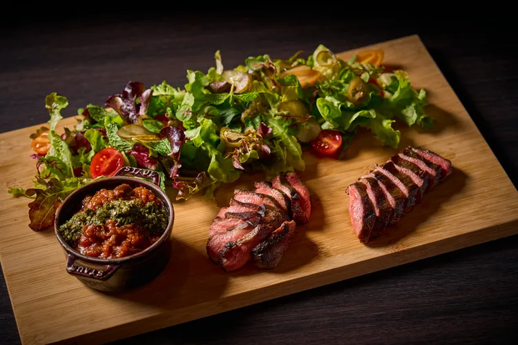 其中最受矚目的亮點,為期間限定料理「牛舌‧三重食感」。主廚精選澳洲和牛牛舌,運用直火燒烤與慢燉兩種手法,細緻呈現舌尖、中段與舌根的各自獨有質地,詮釋「彈、嫩、潤」三重口感,帶來更立體且富有節奏的味覺體驗。