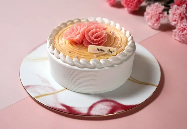 外觀以細緻粉色外觀搭配柔和擠花,低調卻不失優雅;內餡以覆盆莓果的微酸果香結合滑順乳霜與布丁,層次輕盈不膩,像是一種不張揚卻長久存在的溫柔。蛋糕更加入地瓜餡的自然甜味,並以鹽之花輕輕提點,讓整體風味多了一分內斂的層次,也讓「甜」不只是味覺,而是一種剛剛好的平衡。無論是在餐桌上共享,或作為帶回家的心意,都成為與母親之間,一種不需言語的表達。