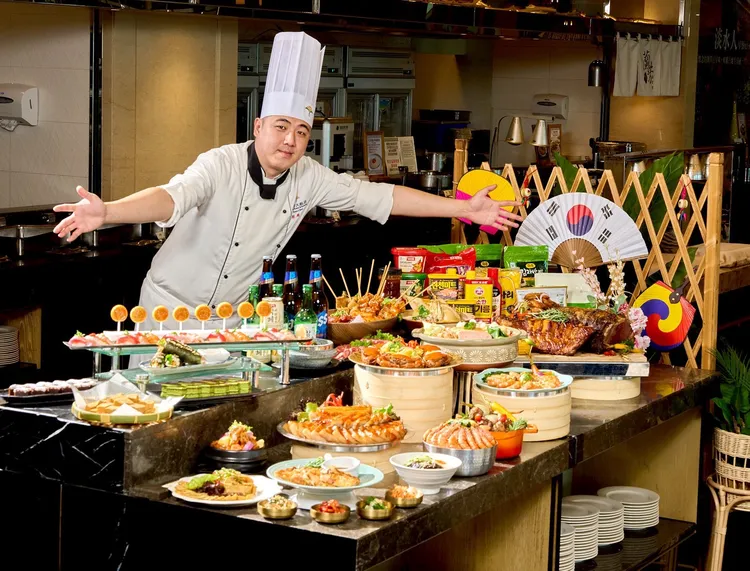 福容淡水漁碼店則以在地歷史為靈感,推出「滬尾宴1002-法軍大砲擊」主題桌席,每桌1萬3800元+10%,將文化故事轉化為餐桌風景;館內田園西餐廳同步推出韓國美食節自助百匯,集結韓式烤肉、炸雞、炒年糕與人參雞湯等經典料理,並搭配Live演唱,營造熱鬧歡愉的節慶氛圍。