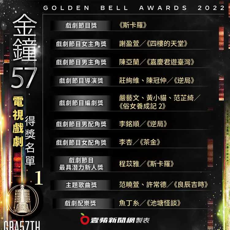 戲劇節目最佳女主角由謝盈萱以在《四樓的天堂》中精彩表現奪下,但由於謝盈萱同時以《四樓的天堂》和《俗女養成記 2》入圍,她上台講感言時口誤,不小心先感謝《俗女養成記 2》編劇,讓場面一度尷尬,好在有頒獎人鍾欣凌機智救場。
