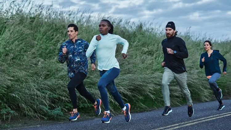 UA同步推出HOVR Machina 3 Storm與Phantom 3 Storm等2款新跑鞋,鞋面加入與UA Storm服飾相同的塗料科技,拉升防潑水性能。HOVR Machina 3 Storm跑鞋配置雙密度HOVR中底科技,提供明顯緩震與回彈的推進力道;Phantom 3 Storm跑鞋則藉HOVR中底搭配動力學足跟杯設計,提供緩震與穩定腳感。
