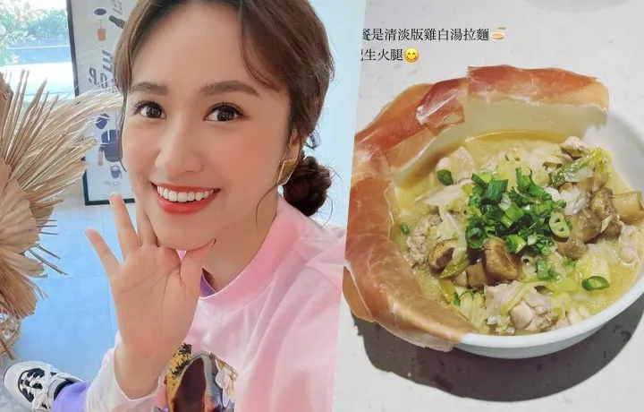 Sandy在IG提到,昨天晚餐準備了拉麵配上生火腿,並自製清爽版雞白湯,並分享了美食製作步驟。她接著提到,昨天發限動立刻有路人警告她「孕婦不能吃生的」,她的回應是「路人不能管我。」
