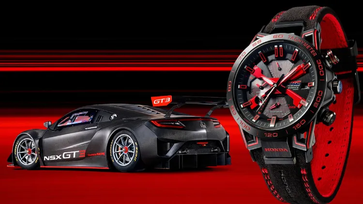 儘管HONDA車隊在2008年已退出F1方程式賽車賽事,但與EDIFICE合作打造的聯名錶,透過細節與配色,彰顯出不滅的賽車魂。EQB-2000HR聯名錶以EDIFICE今年推出的Sospensione懸吊系列EQB-2000腕錶為基礎,錶殼經IP電鍍呈現黑色,配上呼應HONDA賽車紅色代表色的烤漆時標、錶圈刻度、指針勾邊與面盤X裝飾細節等,洋溢賽車元素。其紅色錶耳並臨摹方程式賽車懸臂設計,以及取材賽車儀表板指針設計的紅色指針,錶殼下方並飾有紅色「HONDA」字樣,紅黑配色的錶帶則採與HONDA Type R車款內相同的麂皮材質製作,並飾有「HONDA Racing」字樣,處處藏著HONDA跑車細節的影子。