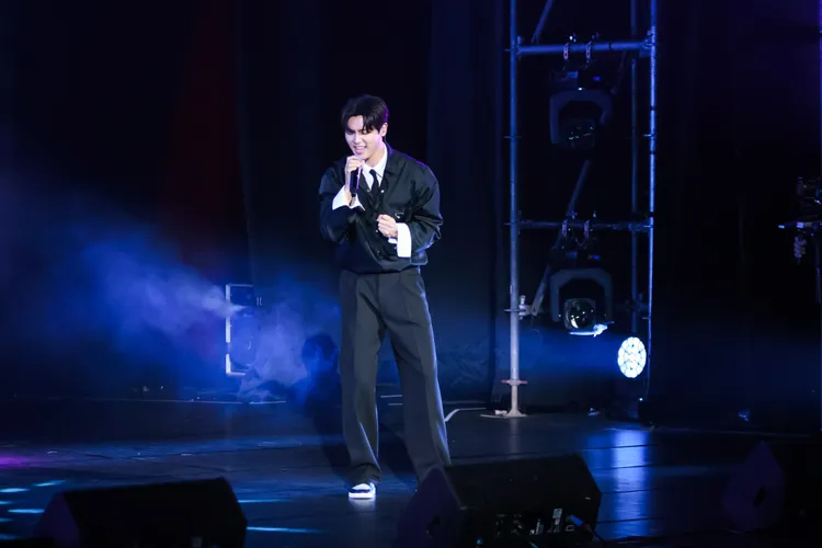 他應現場粉絲要求要現場撒嬌,他僵硬地說:「拜託讓我拍抖音就好了,不要逼我撒嬌。」邊說邊用手指比愛心,但效果似乎沒有很好。他接著用中文說:「哭哭!我要哭哭!」接著害羞到撞牆壁。