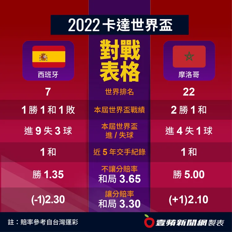 摩洛哥的狀況相當不錯,自從6月22日之後已連9戰未嘗敗績,且這9場加起來只丟2球,防守有一定強度,今天對上西班牙勢必緊守防線,先求不失分,上屆這兩隊在小分組賽其實有交手,以2比2踢平,今天很有可能再踢平,以PK大戰分勝負。