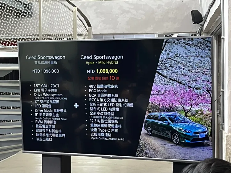 Kia Ceed Sportswagon MHEV最初是由歐洲設計中心研發設計、斯洛伐克機械化工廠打造,過去僅限於歐洲市場販售的車型,而本次導入讓台灣成為全球,除了歐洲市場以外唯一導入純正歐洲旅行車的市場,這次採用全新的48V 智慧油電系統,是以1.5T渦輪增壓汽油直列式4 汽缸引擎為基礎,在CVVD連續可變氣門持續期間系統搭載下可輸出 160匹最大馬力,及25.8kgm的最大扭力,而其所搭配的整合式 e-system則可回充車輛減速時的動能,並用於加速時的扭力輸出,不僅可減少引擎耗能,更使其整體油耗表現達到19.0km/L的優異水準,變速系統則採用7 速雙離合器自手排,並附有ECO 節能、Normal 一般、Sport 運動共三種駕駛模式可切換。