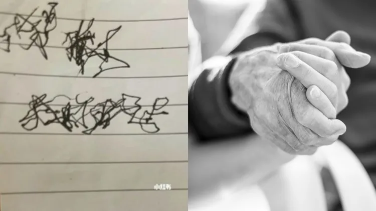 網友在小紅書上貼出照片,表示爸爸臨終前拉著媽媽的手說話,但媽媽聽不懂,爸爸於是在紙上寫了一行,媽媽說看不懂,他又再寫了一行。不過這字跡大家卻看不懂,因此女子PO網求助「這大概是爸爸最後留下的隻言片語了,求助有姊妹可以認出來嗎?」