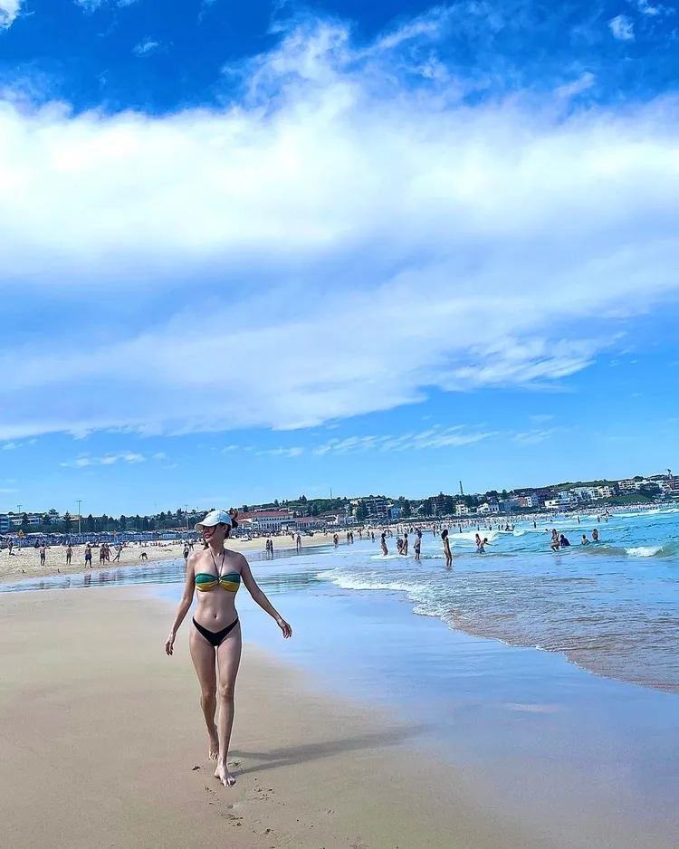 有人提醒她「「哇!這泳衣的尺度也太大了吧!一不小心就曝光了ㄟ……」、「泳褲的部份太驚人!太小了!一不注意很容易穿幫的」。這件泳衣不只來擺拍,Irene日前到海邊玩時,也真的就穿這件戲水,只是泳褲是黑色,看來是工作、休閒都實穿。
