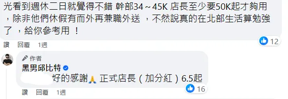 許多網紅紛紛恭喜他,反骨成員之一的蕾菈 Lyla 留言「恭喜恭喜」。也有網友大讚「太高人工了吧,良心老闆」、「薪水其實不錯了,跟醫院醫療人員的薪水差不多」、「現在食安太差了,建議要主打健康又喝的安全的手搖飲料,以黑男的名氣全台都會支持」、「配對配到開店,太厲害了」。