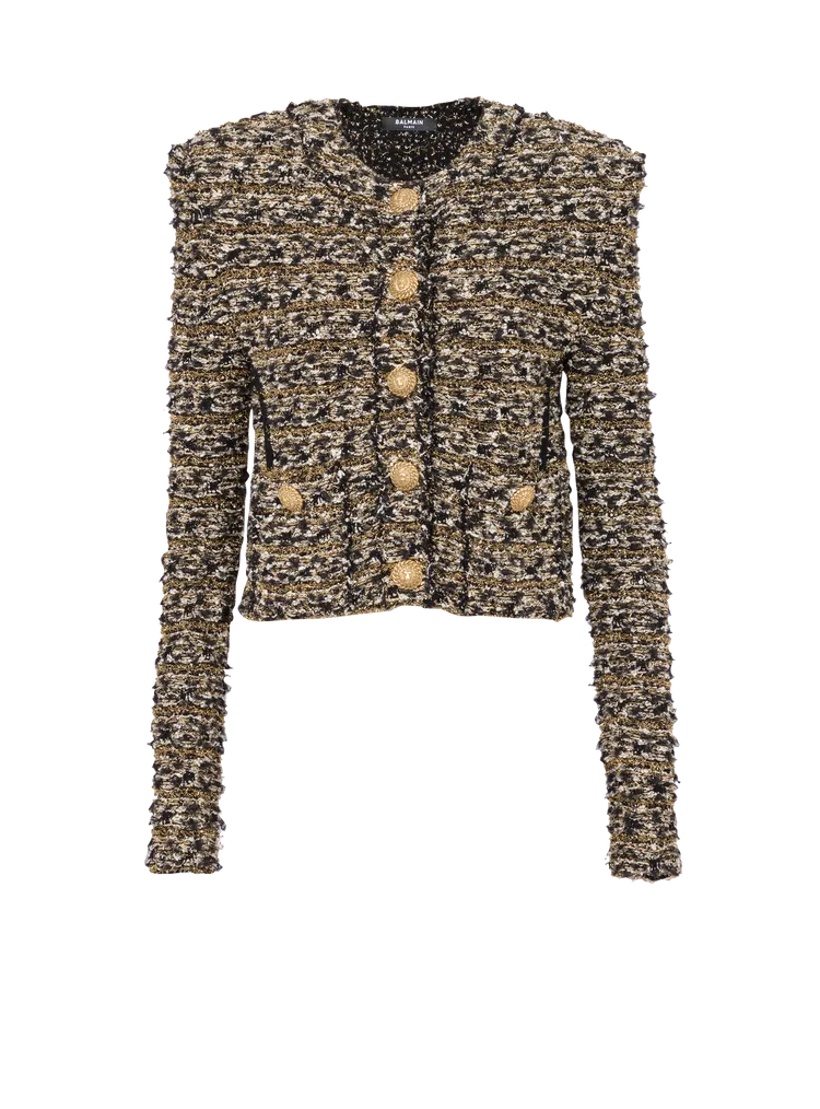 而為了迎接聖誕節,BALMAIN也精選出數件相當適合節日跑趴的服裝,例如低肩蝴蝶結針織上衣,以紅色系以及胸口的蝴蝶結造型帶出滿滿的佳節氛圍感;水晶刺繡短版上衣則在黑色的服裝上綴滿銀色亮片,讓服裝呈現出彷彿下雪一般的浪漫畫面。