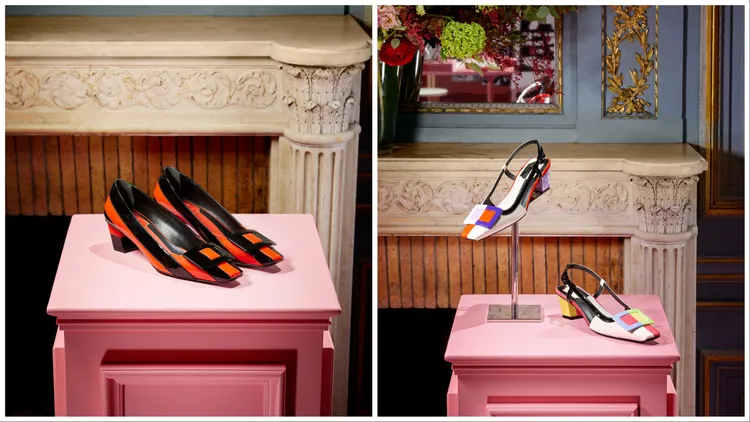 最後一個展區則擺上了品盤標誌性Belle Vivier鞋履,該鞋款曾由知名法國女星凱瑟琳德納芙(Catherine Deneuve)在《白日美人》中曾穿而聞名。此次展區將黑色與白色、淡綠色、玫瑰粉色、西瓜色和檸檬黃相結合,利用拼接而成的幾何色彩演繹出Belle Vivier鞋履的俏皮之處。