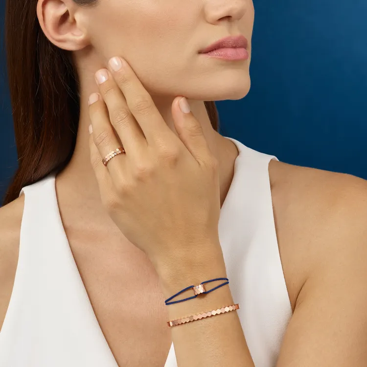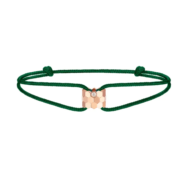 CHAUMET 6月將推出的Bee My Love絲繩手環,於絲繩串上了品牌經典的18K玫瑰金蜂巢設計珠寶,其上還鑲嵌有3顆鑽石,該絲繩響應環保以再生技術打造而成,並擁有7種選擇,目前釋出的定價約4萬元,可輕鬆與Bee My Love系列單品混搭疊戴。