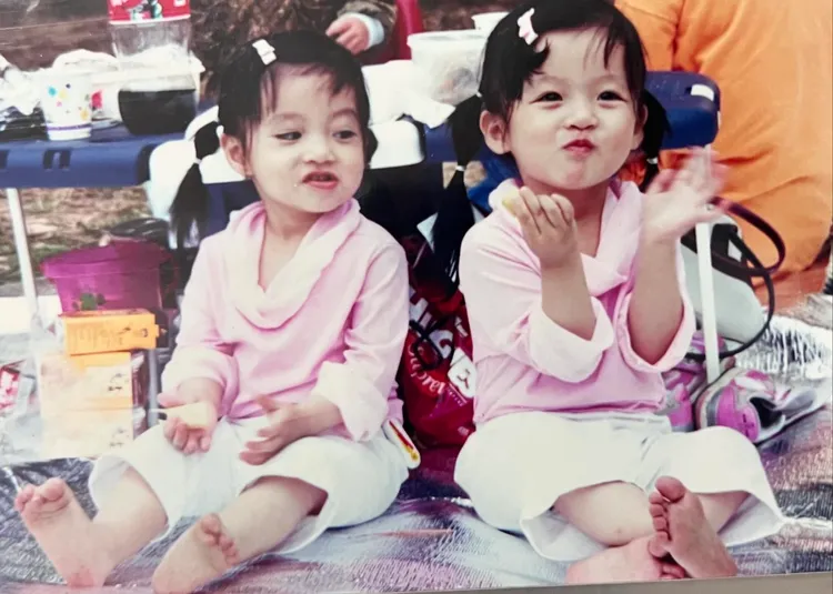 一粒的姐姐Joy在社群分享了與一粒幼時照,可愛萌樣讓網友都融化,寫出「馬鈴薯與她的快樂小夥伴」,雙胞胎造型一樣,讓大家分不清楚誰是姐姐誰是妹妹,也釣出一粒留言,表示「有雙眼皮的是我」。