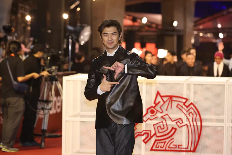 金馬紅毯尾聲帥哥連發,張震此次以《餘燼》第5度角逐影帝寶座,紅毯造型選擇以保守的全黑風格登場,西裝外套與西裝褲皆以異材質拼接方式呈現,使張震在走動時反射出低調光澤視覺,他並以卡地亞美洲豹胸針點綴,整體造型帥氣又不失亮點;而在張震後還有遠道而來的日本男神阿部寬,他以黑色西裝搭配白襯衫與蝴蝶結,自帶電暈人的帥氣氣場。