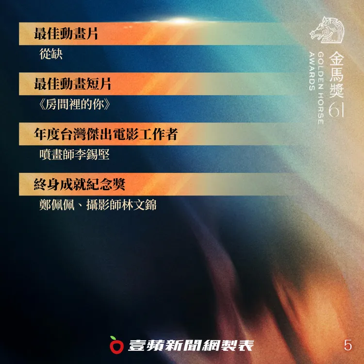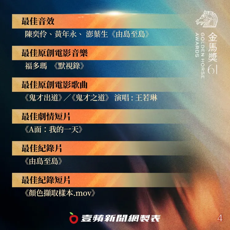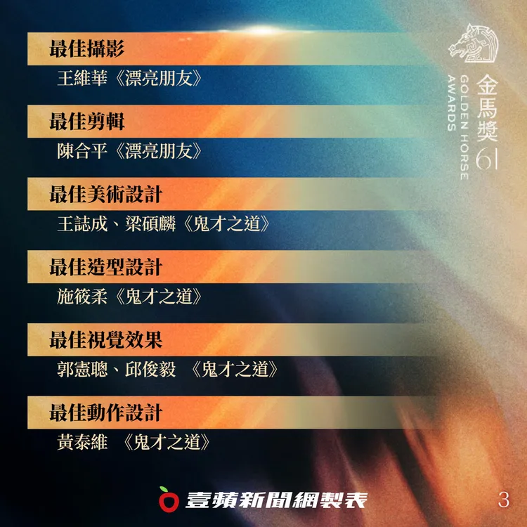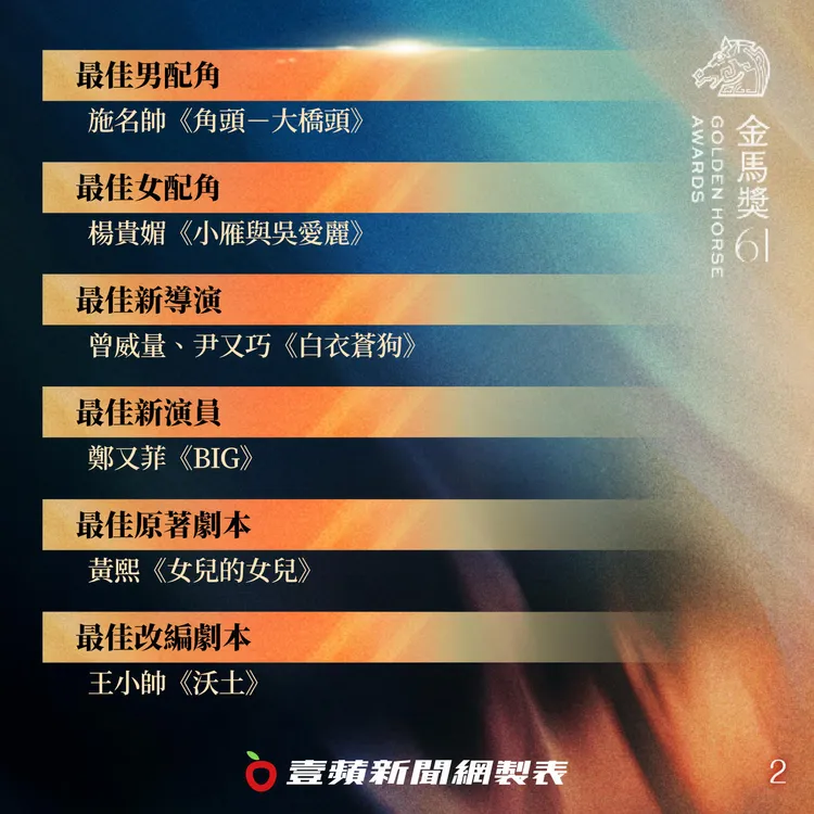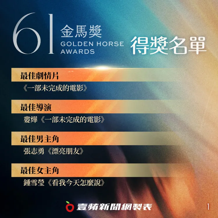 這篇報導屬於「 金馬61頒獎典禮 」主題,更多延伸閱讀:
