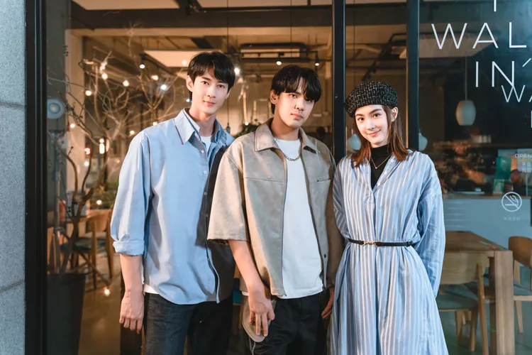 陳零九(中)在MV旁觀黃柏峰(左)和陳萱上演感情落幕。圖/種子音樂提供