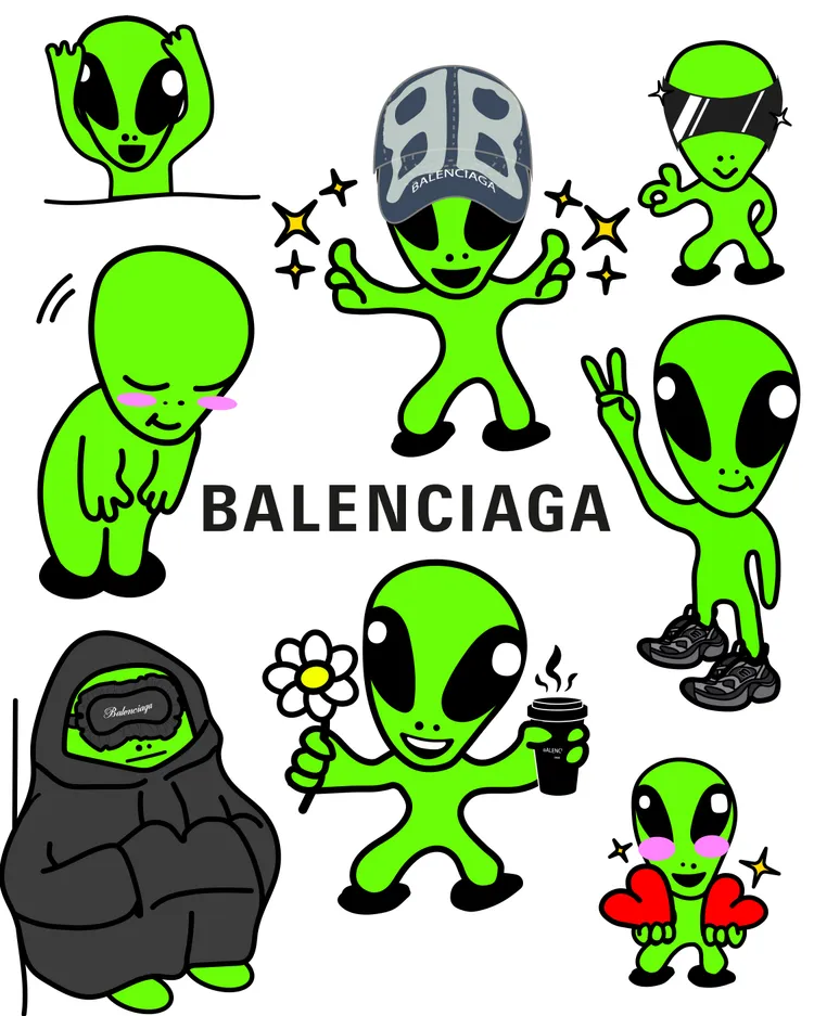 這款慶祝年度外星人日的貼圖,靈感來自BALENCIAGA 2025夏季T恤、連帽衫和Darling手勢中的外星人元素,以其為原型延伸出活潑又帶著討喜怪異感的貼圖,外星人們也穿戴Panther Mask太陽眼鏡、6XL運動鞋、緞面眼罩、BB Sprayed運動帽等單品,當起「潮味ET」。