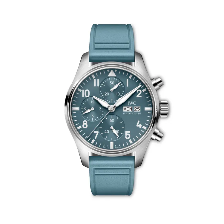 除了陶瓷錶款,IWC萬國錶亦首次將此Pantone色彩應用於精鋼腕錶飛行員系列計時腕錶41(型號IW388117)。這款腕錶採用41毫米精鋼錶殼,搭配「TOP GUN Miramar」藍色錶盤與橡膠錶帶,鍍銠指針同樣覆有Super-LumiNova夜光塗層,進一步提升了可讀性 。