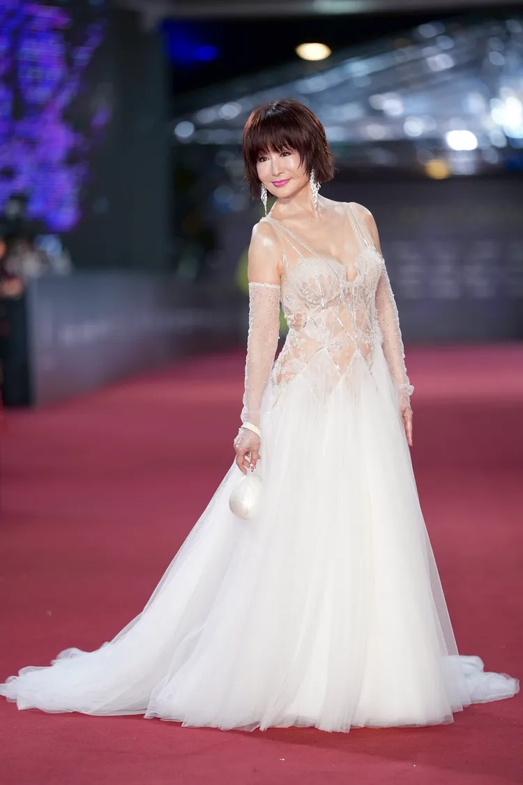 一代女皇潘迎紫降臨紅毯 套爆乳裝太凍齡
