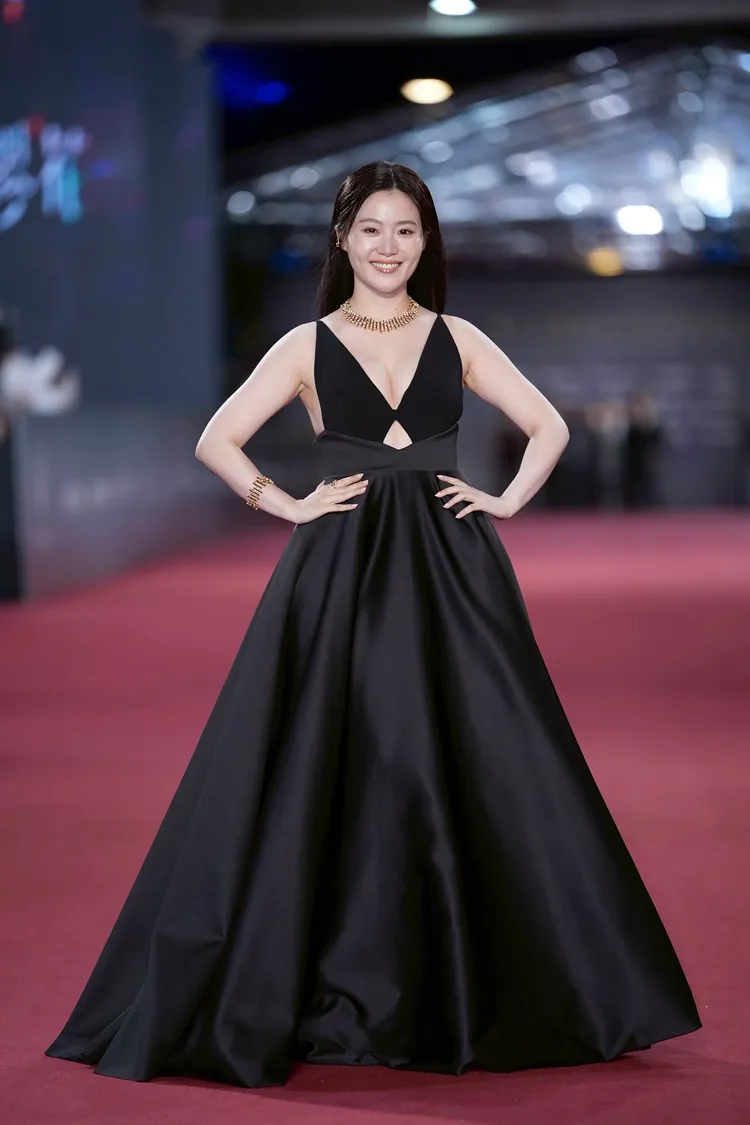 李沐以《誰是被害者:第二季》入圍迷你劇集(電視電影)女配角獎,有望睽違5年再度以同個角色獲獎,她也自曝抱著平常心來參加「同學會」的感覺。此次紅毯戰袍出自CHANEL的黑色蕾絲裝,上半身以細肩帶、微V型剪裁凸顯女性纖細線條,下半身則以迷你貼身熱褲外罩蕾絲透膚澎裙,行走間自帶俏皮效果,配上一頭波浪公主頭髮型後也相當浪漫。