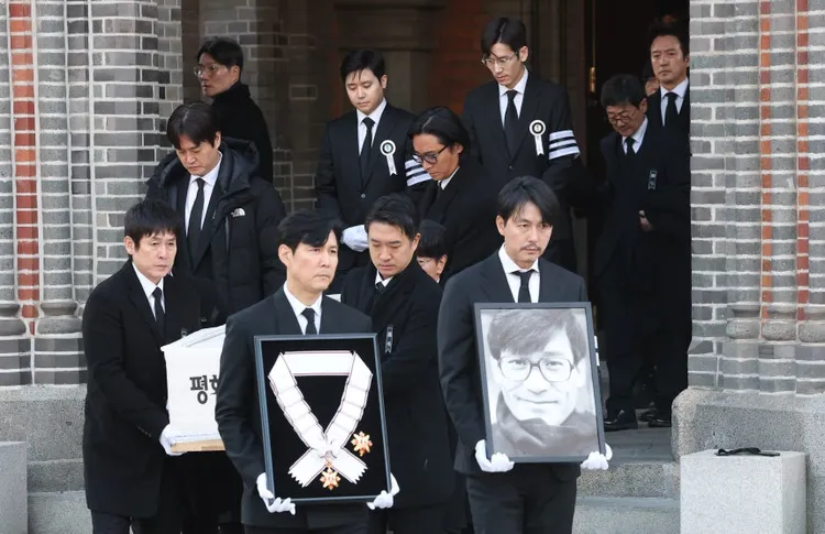 安聖基的送葬隊伍7點從首爾聖母醫院得殯儀館出發,殯葬彌撒8點在明洞教堂舉行,彌撒結束後舉行了告別式。葬禮由鄭雨盛捧著安聖基的遺照進場,唸到追悼詞時回憶與安聖基的相處過程,感念他為韓國電影的付出,「他對自己賦予這樣的責任感,對自己非常嚴格,時而看起來無比孤獨,但他始終從容堅定,前輩是影響所有人的鐵人,非常崇高」。