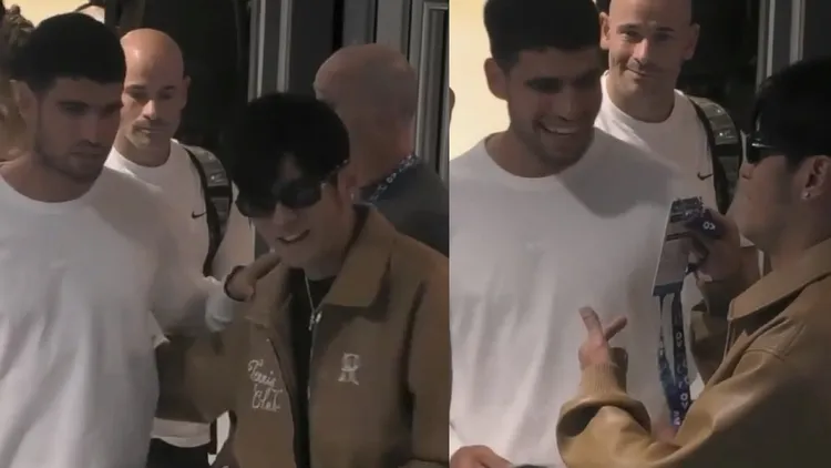 主播旁白念出:「今晚有一場大滿貫賽事,卡洛斯艾卡拉茲名列前茅,是頭號種子。他正與周杰倫在一起,這位台灣歌手、詞曲作家兼演員。他也會上場比賽嗎?是的,他也會參賽。」