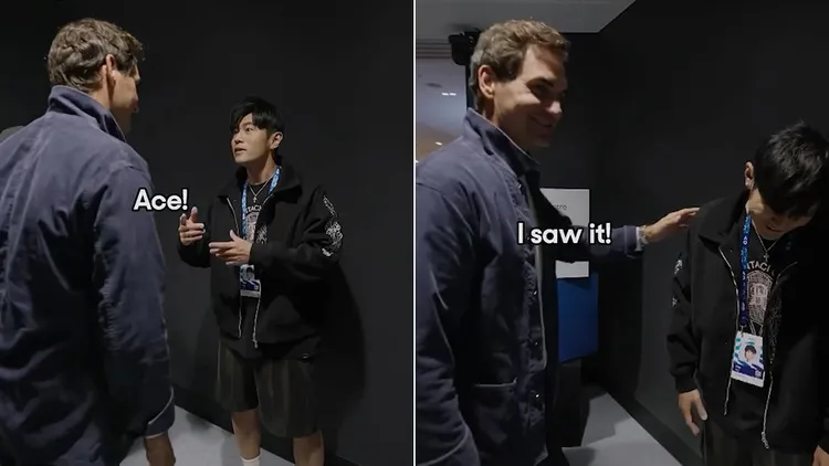 澳網今天在IG分享周杰倫與費德勒在後台相見的影片,周杰倫表示自己是來參加「一分大滿貫」表演賽,費德勒馬上接話說:「我看到了!Ace球!哈!我看到了!我看到那記Ace球!我想你怎麼都沒有做出反應。」周杰倫自嘲以為能夠碰到球,「也許明年吧!」