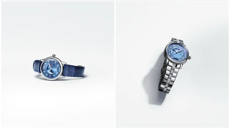 作陣容涵蓋一只30mm日期顯示自動腕錶,以及30mm與34mm兩款晝夜顯示腕錶,將經典比例與現代審美巧妙融合。設計語彙延續品牌對工藝與美感的高度講究,細緻的星軌壓紋工法運用自動腕錶的錶圈,以及晝夜顯示腕錶的錶盤,靈感取自夜空中星辰行進的軌跡,鋪陳出低調而富層次的視覺節奏。