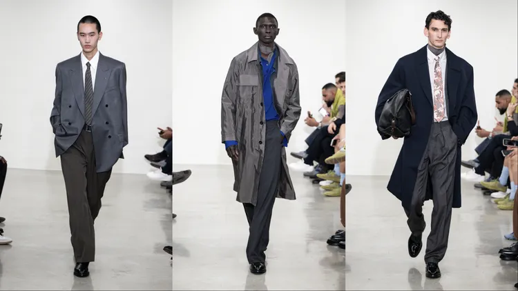 本季的「喜鵲式穿搭」,代表著收集各式物品、有多種不同風格的人。為了呼應主題,創辦人Paul與新任男裝設計總監Sam Cotton多次造訪位於諾丁漢、藏有近5千件作品的品牌檔案館。他們汲取1980年代末至1990年代初期的經典秀場靈魂,並將這份長達55年的時尚紀錄重新淬鍊。系列中可見大量解構與內外翻轉的驚喜細節,或是Harris Tweed與Donegal等傳統面料的重新運用,展現出品牌不願受經典束縛的熱情。