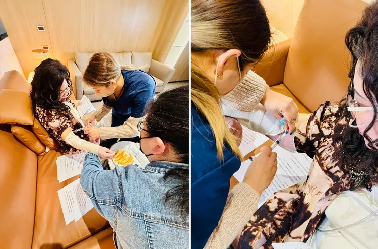 貼文中她分享在台大癌醫分院接受治療的照片,當天下午5點一次打了8針,形容為「眾針成城」,並感謝醫療團隊的照顧與支持。不少網友湧入留言為她打氣,祝福早日康復,讚賞她在病痛中仍保持幽默與正向態度,感動許多人。