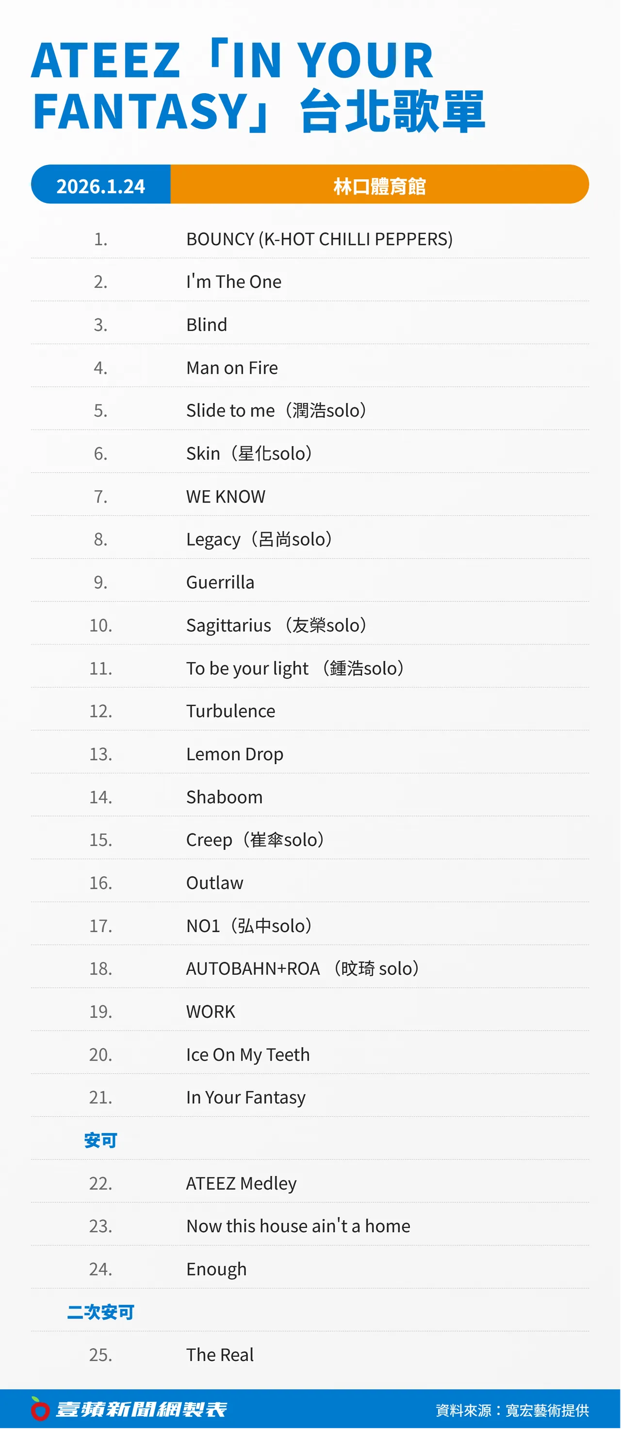 ATEEZ世巡「IN YOUR FANTASY」台北場setlist歌單