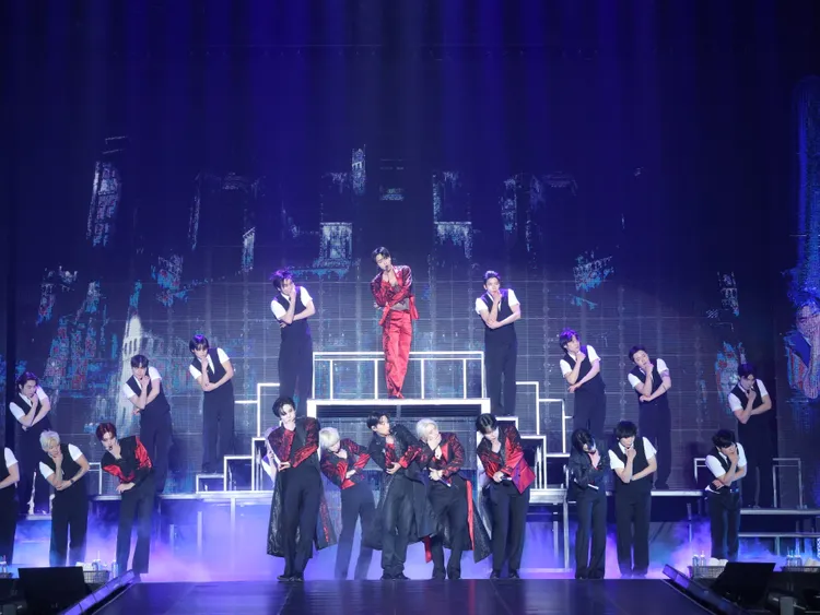 他們演唱《Man on Fire》、《WE KNOW》、《Guerrilla》等歌曲穿插在每個成員的個人表演,solo由潤浩打頭陣,他身穿黑色西裝,在地上狂扭《Slide to me》,讓全場陷入瘋狂。星化穿著紅色皮衣勁裝接棒演唱《Skin》,像走伸展台一樣走到延伸舞台,唱到一半脫掉皮衣,露出串珠小背心,背部全裸放送健壯背肌,全場尖叫聲爆表,星化開心表示「我終於拍了MV」,被一旁的隊友誇「sexy」。